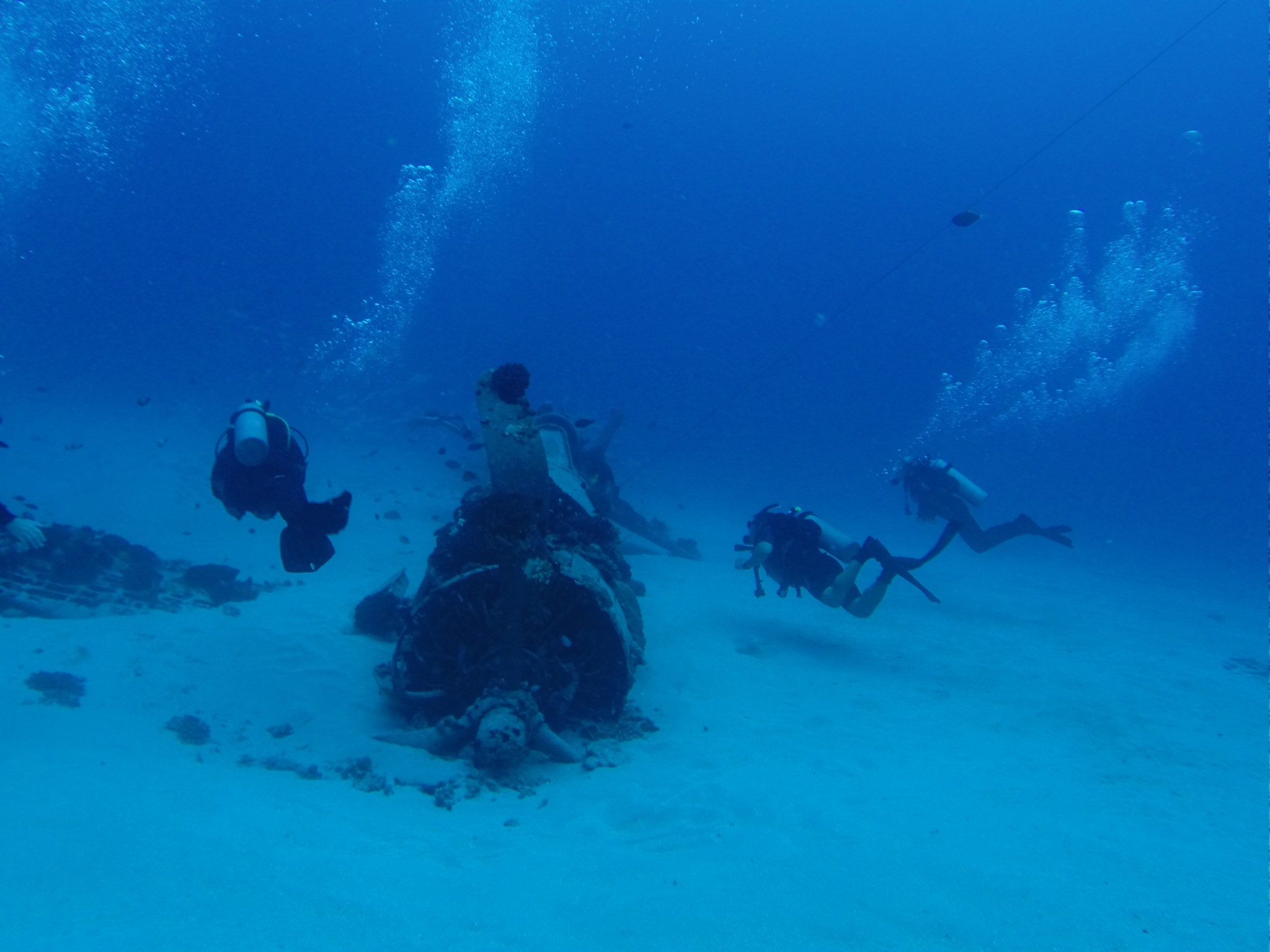 Aloha! Thanks for joining Island Divers for a great morning of diving. Captain Kendall led us out to the beautiful Navy F4 Corsair wreck. Once we were moored up, we headed down the 108′ to the Corsair and explored the wreck’s structure, eels, octopus, and soldier fish. Swimming over the sand we watched the garden eels dancing in the sea currents. After :20 we ascended, completed our safety stop, and prepared for our next dive.